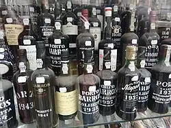 - Vinho do Porto (Port wine) is Portugal's most renowned export. The grapes are grown and processed in the Douro Valley. The wine is stored in wooden barrels and it was traditionally shipped down the Douro river to Vila Nova de Gaia, across from Porto, where it is aged in a wine lodge (cellar). Port is typically a sweet red wine, often served as a dessert wine, although it also comes in dry, semi-dry, and white varieties.