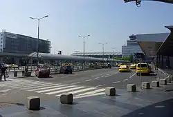 - By Airport Express AE – These buses leave the airport from public bus stop called "Terminál 1" (see above) every ½ hr; 05:30–21:00. Tickets cost 100 Kč and are not transferable, nor valid for any other service. Available from the driver (contactless accepted) or at Public Transport counters at arrivals in both terminals. The final stop will be Prague's main train station Hlavní nádraží C , which is commonly abbreviated in Czech as "Praha hl.n.". The Airport Express' high price and low frequency makes it unattractive compared to bus 59, though it offers the added convenience of a direct, non-stop connection to the central train station and the surrounding area.