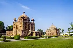 - 🌍 Bibi Tamolon's Tomb. On the western side of the three tombs lies the lone tomb of Bibi Tamolon. Nothing much is known about the tomb or its occupant. The sandstone built octagonal tomb stands on a high plinth and is topped with a dome.