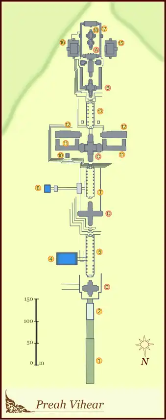 • A 500-metre gently climbing avenue leads up to Gopura II (#6), another smallish pavilion, and a large boray (water cistern, #4) to the left.