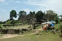 Prasat Preah Vihear (ព្រះវិហារ) is a Khmer (Cambodian) temple crowning a 525-m cliff in the Dângrêk Mountains in Cambodia, across the border from Si Saket and Kantharalak in northeastern Thailand. It is also the name of the surrounding province.