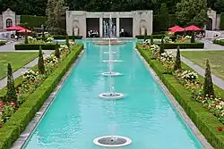 In Toronto's suburbs, Old Oakville, has a few small buildings restored to the pioneer era, with costumed interpreters. Parkwood Estate Gardens in Oshawa is a grand private estate featuring architectural, landscape and interior designs of the early 20th-century English Arts and Crafts period. It operates as a museum and public garden. Unionville Main Street historic village developed in the 1840s in what was then Markham Township. As typical of a small village, it boasts numerous quaint period buildings in an idyllic surrounding.