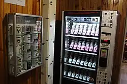 - 🌍 RadioProActive, Чорнобильінтерінформ, Bohdana Khmelnytskoho. A selection of shirts (male and female, various sizes) can be purchased from a vending machine. A share of the revenue is automatically donated to settlers in the Exclusion Zone. To buy mugs with a trefoil logo on it, ask at the bar. They also sell some post cards, but usually no stamps. 500 грн.