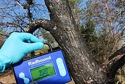 If possible, take a geiger counter or similar radiation measurement device with you into the Red Forest to compare activity levels at different locations. Birch trees and lichen are particularly prone to absorbing radioactive Cesium (accounting to the majority of radiation after 32 years), and often read much higher radiation levels with peaks up to 3,000 counts per second not exceptional. Make sure the probe of the geiger counter does not touch any of the vegetation to avoid contaminating it! Free.