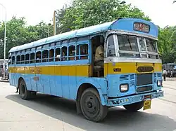 The bus network around Kolkata is possibly the most exhaustive in the whole of India and it is the cheapest, though not always the most comfortable means of transport. The routes are written all over the colourful buses in Bengali and also in English. The conductors call out their destinations to everyone they are passing and all you have to do is wave at the bus anywhere and it will stop, at times causing a small queue of other cars behind it. Buses in Kolkata, Howrah and other parts of West Bengal do not have a card system. One has to buy tickets after boarding the bus. The bus tickets are simple paper tickets purchased from the bus conductor.