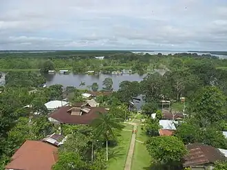 Puerto Narino is 85 km from Leticia near the intersection of the Amazon and Loretoyacu rivers. The town has about 2,000 people, 95% of whom are Ticuna, Cocama and Yagua.