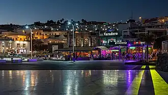 Puerto del Carmen is a large tourist resort on the south coast of Lanzarote, a few km west of Arrecife the capital and airport. It has long sandy beaches (unusual on this island) which are more sheltered than the exposed north and west-facing coasts. It's part of the municipality of Tías but has far outgrown that small town, and in 2022 it had a population of 11,319.
