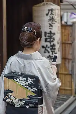 There are quite a few guides on the Internet that show you how to put all the other elements together, so they won't be replicated here. You will find it quite difficult at first and your first few attempts may look a bit silly, but you get better with practice. Fitting kimono onto people is actually a recognised skill in Japan and aside from registered fitters or cosmetologists it isn't legal to offer one's services to put on a kimono for financial gain – though obviously, if you've got the skills and are willing to help a friend, they'd almost certainly be infinitely grateful.