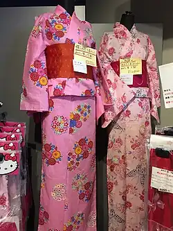 - Yukata (浴衣) – The cheapest and least formal type of kimono. A one-layer, unlined cotton kimono, it's traditionally worn in summer with a hanhaba obi (for women) or a kaku obi (for men). Yukata are often worn by both men and women at summer festivals, and as a bathrobe in onsen resorts.
