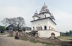 - 🌍 Rath Mandir (Jaganath Mandir) (Located next to Pancha Ratna Shiv Temple). Like the nearby Pancha Ratna Shiv Temple this temple was also constructed by Bhuban Mayi Devi. The date of construction is 1823 (another opinion 18390). It is dedicated to Lord Jaganath. Although much shorter than its neighbouring temple the Rath Temple has its share of elegance. The octagonal two-storied temple is topped with a dome-like structure topped with a finial. The white-coloured temple has beautiful stucco work.