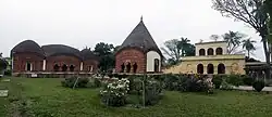 Puthia (pronounced pou-tee-ah) is a village in the Rajshahi Division of Bangladesh. It is known for its elaborate Hindu temple complex housing several temples complete with towering spires and intricate terracotta ornamentations. A moat surrounds the complex. The complex also has a pond in the middle. The complex also houses the colonial-styled mansion of the Puthia Zamindar (landlord) family.