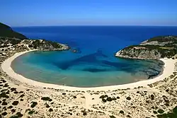 - To the north of Pylos, the limestone-ridge is interrupted creating a set of connections between the bay of Navarino and the Ionian sea. Also the amazing bay of Voidokilia is such an interruption in the limestone ridge. It is here that the waves of the Ionias sea created one of the most spectacular beaches of Greece. The breaking up of the limestone ridge caused the creation of the uninhabited island of Sphacteria.