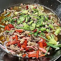🌍Guoqing's Chicken Giblets(国庆鸡杂老店),No. 241 Danhang Road (黔江区丹行路241号),☏ +86 23-79230420.10:00-21:00.Guoqing's Chicken Giblets is located in the center of Qianjiang District. It mainly sells chicken giblets and specialty stir-fry dishes. Think carefully if you can't eat offal foods. Most of the restaurant's dishes are made from offal and have a spicy flavor.¥51.(updated Oct 2024)