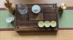 Many Quanzhou tea shops also sell the miniature tea sets that are most commonly used in this area; making and drinking tea this way is somewhat labor-intensive (each cup is smaller than a shot glass and a 'pot' is about as big as a coffee cup) but an enjoyable social experience. Making and serving tea in this way is not really a tea 'ceremony' in the sense of a Japanese tea ceremony, but it is still a ritualized and celebrated process.