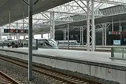 The station is served by frequent high-speed trains running on Fujian's coastal high-speed railway between Fuzhou and Xiamen. The line continues north beyond Fuzhou to Wenzhou, Hangzhou, and Shanghai, and south beyond Xiamen to Shantou and Shenzhen. A few trains also go to inland destinations, such as Nanchang in neighbouring Jiangxi province, Wuhan, and points beyond. See High-speed rail in China for details.