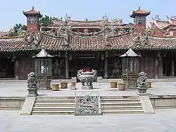 - 🌍 Guan-Yue Temple (Tonghuai Temple of Guan Yu and Yue Fei (通淮关岳庙)), Tumen Jie 196 (鲤城区涂门街196号) (just east of the mosque). A large and impressive Taoist temple. Guan Yu and Yue Fei were generals, and this is a warrior temple, one of many dedicated to them in various parts of China. Note the huge (over 2 stories tall, with a big chimney) ritual furnace for burning joss paper. The furnace becomes very busy around the holidays such Yuanxiao, when people line up to burn their offerings. free.