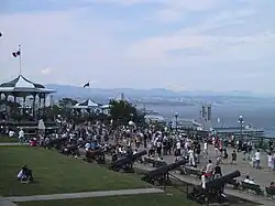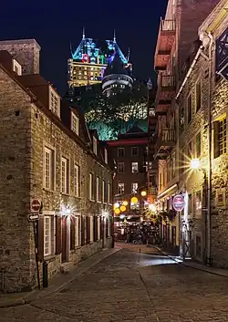 Quebec City (French: Ville de Québec, or just Québec) is the capital of the Canadian province of Quebec. It sits at a commanding position on cliffs overlooking the St. Lawrence Seaway. Quebec City's Old Town is a UNESCO World Heritage Site and one of only three cities in North America (the others being Campeche, Mexico and San Juan, Puerto Rico) with its original city walls. Quebec is a city of about 700,000 residents.