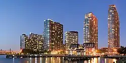 Long Island City was traditionally an industrial area and often still feels like Manhattan's unkempt broom closet, with its train depots, factory buildings, school bus parking lots and the like. But since the early 2000s, a burgeoning art community has grown like a weed through the cracks in a sidewalk and is now quite strong, with multiple art galleries, performance spaces, a formal museum that acts as a branch of MoMA. This, in turn, has attracted a stretch of quality restaurants and bars along Vernon Boulevard north of the bridge, which has in turn brought new housing development and a growing community of young families along the river.