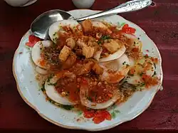Thanh Tấm,41 Ngô Mây,☏ +84 56 625-0309.Mid-sized vegetarian restaurant one block south of the Minh Tịnh temple.Daily lunch of mixed vegetables including rice and soup for 15,000dong.