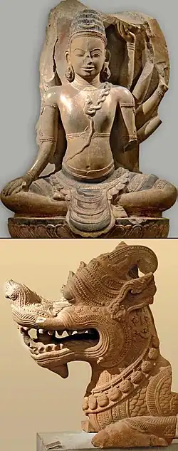 Hindu icons Shiva and makara dragon found at Champa sites outside Quy Nhơn. The sculptures, carved in the 11th to 13th centuries, are held in the Musée Guimet, Paris, France.