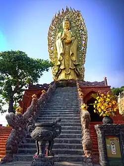 Quy Nhơn first came to prominence in the 11th century as the capital of the Chams, the indigenous people who ruled over what is now Central Vietnam. With its fertile lands, well-protected port, and large river ideal for transportation, the area was able to support the expanding Cham empire and its growing economy, and the surrounding mountains — as well as the extra hundreds of kilometres of distance from their enemies, the Viets. The Cham built up a commercial centre and port in what is now Quy Nhơn and established their new capital of Viajaya in the plains 50 km safely back from the coast, which dominated Central Vietnam and the trade routes of the South China Sea.