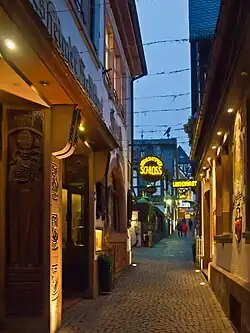 - Drosselgasse is a very pretty (and very touristy) strip of restaurants and souvenir shops in the heart of Rüdesheim.