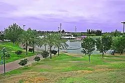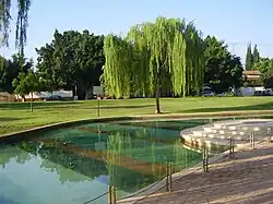 The park of Ra'anana is the largest urban park in the Sharon region. It offers walking and bike paths, sports fields, a zoo and children's petting corner and a lake in a clover shape reminiscent of Ra'anana's coat of arms. There are two fountains in the lake and pedestrians can cross over it on the bridge. There is a park with a small zoo section as well as occasional Shakespeare performances.
