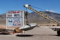 There was a large logo for Kentucky Fried Chicken (KFC) on the ground in the northern part of town which claimed to be the first logo to be seen from outer space. There was an Area 51 Research Center operated in the late 1990s by UFO researcher Glenn Campbell, but it is now closed. There is one motel. The area remains popular for geocaching.