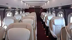 Most trains operating on the bullet train networks of eastern Japan and Hokkaido (those operated by JR East and JR Hokkaido) offer a premium Green Class experience known as GranClass (グランクラス guran-kurasu). The service can be equated to international business class on an airline and features 18 wide, power-reclining "shell seats" in a 2+1 configuration.
