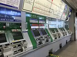 General purpose automatic ticketing machines are becoming more prevalent. These machines can be made to display English and are able to issue long-distance fare tickets and limited express tickets for both reserved and unreserved seats. They are usually located around ticketing windows. When buying fare tickets, take note of the route displayed, as you are required to travel on the ticketed route (stopovers are not allowed outside of that route).