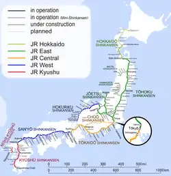 - All Shinkansen trains except Tokaido, San'yo and Kyushu Shinkansen services