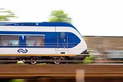 NS employs Stadler FLIRT trains for sprinter services as well. These were taken into service following a shortage of rolling stock that formed between the completion of the order for SLT trains, and the start of production of the SNG. This train features charging outlets in first and second class, and is decorated throughout with De Stijl and Mondrian-inspired elements. NS FLIRTs are mostly found in service in Noord-Brabant and Gelderland.