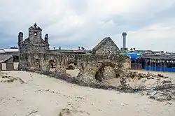 - 🌍 Dhanushkodi Abondoned Church. The abondoned church is one of the prime attraction of Dhanushkodi. Nothing much is left of the church. The entrance wall still stands. The alter and portions of the back wall can still be seen. On the sides remains of arches can be seen to this day. Make shift stalls at the church entrance sells artifacts made of locally collected sea shells.