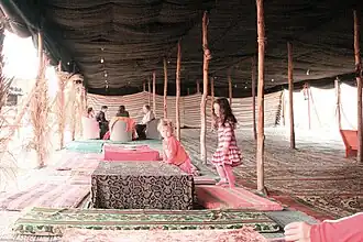 - 🌍 Mati and Roni's DeserTent Guest House, Nahal Arava St 3 (Across from the town center), ☏ +972 50 590-3661, Mati_ronis@walla.com. A warm, relaxing stay in the cold desert nights. In the tent you can find mattresses, clean sheets, warm blanket and pillows. You can also order hot meals (made by a chef, but as a home cooked food) for ₪60, or a desert breakfast for ₪50. They can also advise you on places to visit and give you safety tips on desert travel. ₪70.
