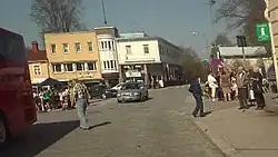 Ekenäs Council Hall Square (Rådhustorget) and Council Hall to left of this picture and to the right Kungsgatan, Finland's first pedestrian only street and still a vibrant shopping street with varied wares