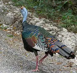 Ocellated Turkey (Meleagris ocellata) on the road - Calakmul Biosphere Reserve