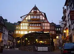 From the east take the A66 Wiesbaden exit of the A3 then B42. From the west the A61 then one of the Rhine ferries.