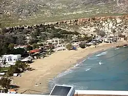 Tsambika Beach. On the far right of the beach near the rocks nude sunbathing is tolerated.
