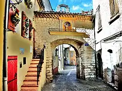 - The village is built on a hill that is dominated by a 12th-century bell tower and the church of Notre Dame de Nazareth.