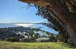 - π Miller/Knox Regional Shoreline (AC Transit bus 72M to Tewksbury Ave and Washington Ave, then walk down Washington to Belvedere Ave or Western Drive, either of which will take you to the park). Beautiful park in the Point Richmond neighborhood. The west side has quiet, easy walks along the bay and a picturesque lagoon. The east side has hilly hiking trails characteristic of the Bay Area, with great views of Marin to the west, the industrial and residential landscapes of Richmond to the east, Oakland and San Francisco to the south, and the San Pablo Bay to the north. If it's a clear day, you can even see Mount Diablo poking up above the ridge. The park also includes Keller Beach, a small strip of sand on the bay.
