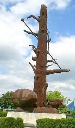 - Rostige Eiche ("Rusty Oak"). Large-sized cast-steel sculpture by Jörg Immendorf (1945–2007), officially named Elbequelle ("Elbe source"), but nicknamed "Rusty Oak" by locals. An artictic bow to both Riesa's location on the river Elbe and its steel industry heritage.
