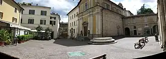 is north of the mediaeval city centre, just outside the city walls, 500 m (1,600 ft) from the main Vittorio Emanuele square.