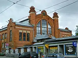 - 🌍 Āgenskalns Market (Āgenskalna tirgus), Nometņu iela 64 (Tram 2 or trolleybus 5 - Āgenskalna tirgus stop), agt@apollo.lv. Daily 07:30-18:00. This is a smaller counterpart to the Central Market, to be found the central square of Āgenskalns on the left bank of Daugava, which is a crossing of no less than 6 streets. An impressive building from 1911-23, remarkable as a red-brick manifestation of Jugendstil architecture in Riga. While the offerings are decisively not geared towards tourists, you may want to visit just to experience the historic low-rise neighbourhood.