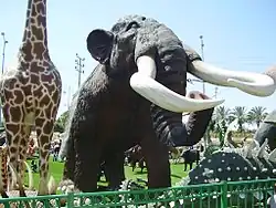 Sculptures of mammoth and other creatures at the entrance to Cinema City
