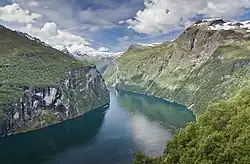 Road 63 is a 100-km regional route in Møre og Romsdal between Åndalsnes and Skjåk/Stryn via Valldal and Geiranger. The route runs through some of Norway's top sights, including the road with 3 dramatic hairpin roads and an excellent panorama of the famous Geirangerfjord. It used to be called the "golden route"; it has been named one of 18 national tourist routes. Because of deep snow and avalanches most of the route is available only from late May until November.