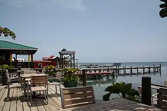 - French Harbor - has some good restaurants and resorts, and most tourists do not venture further east than French Harbor, which is at roughly the midpoint of the island. Past this point are a few newer beach resorts, resort communities, and some private towns with beaches and resorts. Many of the resorts, restaurants, and bars on this part of the island were, in the past a secret of the locals and expats - but with the west end becoming more crowded, the secret is out, and more tourist are finding their way to the east end of the island. One point of interest would be Jonesville and the infamous Hole in the Wall restaurant reached by taking a small water taxi from Jonesville to reach it. Another is Camp Bay Beach Adventure Lodge and the Tasty Tarpon Restaurant, located on Camp Bay Beach, the largest of all the beaches of the Bay Islands, and can be accessed by car or boat.