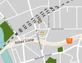 - 🌍 Louise M. Slaughter Rochester station, 320 Central Ave (N Clinton Ave at Central Ave). Daily 5:30AM-12:30AM. The station's immediate environs are not particularly accommodating to pedestrians. You'll probably be fine if you're walking from, say, the transit center, but use caution after dark and don't try to venture north across the railroad tracks. The new Slaughter station itself, though, is up-to-date and modern, if a bit sterile; its parking lot is well lit and quite safe. Be prepared for delays and be aware there's not a whole lot to do to kill time in or around the station. There is some minimal retail and amenities like charging outlets. A few taxis will often be waiting at the station around the scheduled arrival times, or you may want to arrange for a rental agency to pick you up.