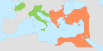 - 🌍 Ravenna (Emilia-Romagna). Capital city of the Western Roman Empire from 402 until its collapse in 476 due to its strategic and defensible position. Famous as the location where Julius Caesar gathered his forces before crossing the Rubicon, in 49 BC, and also for its 6th-century churches with exceptional and very well-preserved Byzantine mosaics.
