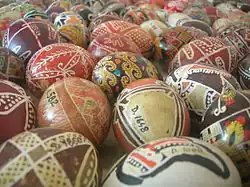 Other dishes include a burger bun with a slice of ham, a slice of cheese and a layer of French fries, ciorbă de burtă (white sour tripe soup), ciorbă rădăuțeană (very similar to ciorbă de burtă, but with chicken instead of tripe), ciorbă țărănească (a red sour soup, akin to borș but with the beet root being replaced by fermented wheat bran, with lots of vegetables), Dobrogean or Bulgarian salads (a mix of onions, lettuce, tomatoes, cheese, white sauce and ham), onion salad - diced onion served in a dish, tomato salad - diced tomato with cheese, șorici (pig skin - boiled and sometimes in stew), and drob (haggies) - a casserole made from lamb or pork liver and kidneys. Local eclectic dishes include cow tongue, sheep brain (Easter), caviar, chicken and pork liver, pickled green tomatoes and pickled watermelon.