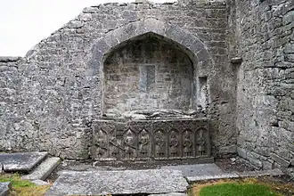 - 🌍 Roscommon Friary, Circular Rd. 24 hours. Ruins of a Dominican Friary founded in 1253 on the site of a 12th C Augustinian priory destroyed by the Normans. Felim McHugh O'Connor, King of Connacht, was buried here in 1265; the effigy in the north chancel (in very Anglo-Norman regal get-up) is either him or a successor, while the fellows on the tomb front are 15th-century mercenaries. The friary was suppressed at the Reformation and the stone of its tower and cloister removed. Free.